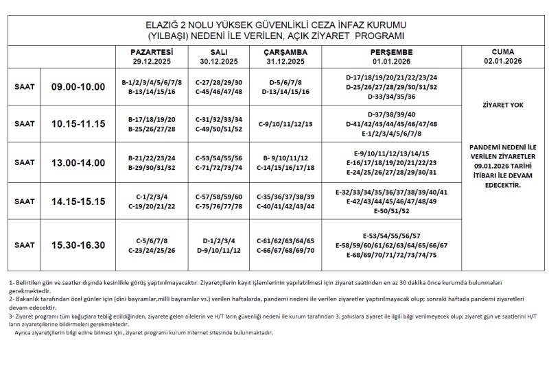 2026 YILBAŞI NEDENİ İLE VERİLEN AÇIK GÖRÜŞ PROGRAMI